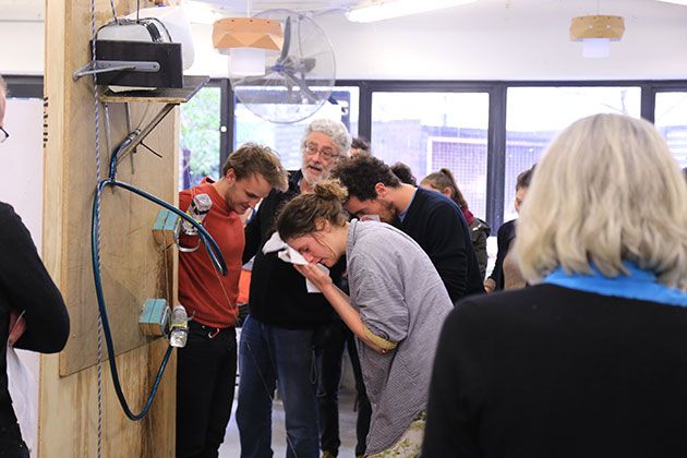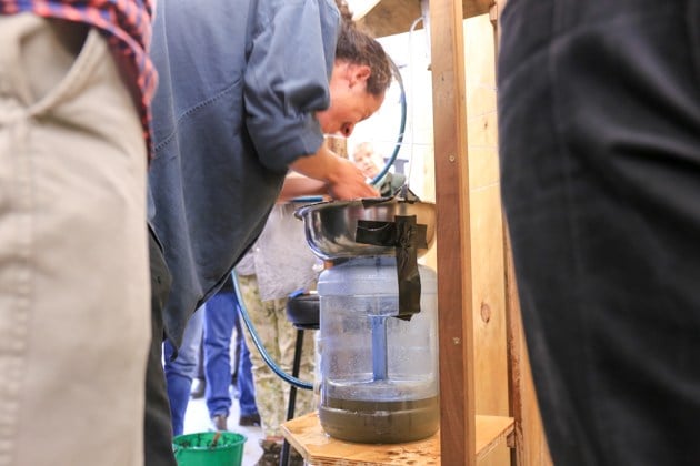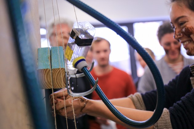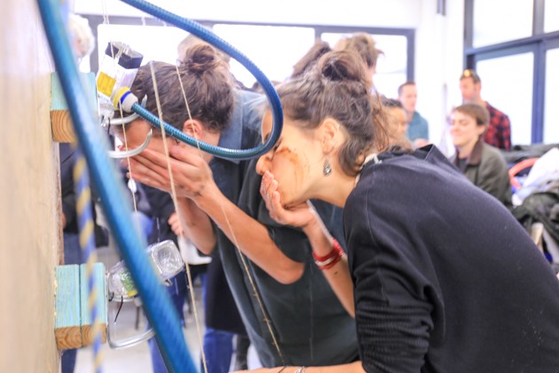 Over both challenges the student groups had to assemble, test and demonstrate to a panel of experienced judges how their designs worked, the aim to use as little water as possible and remove the most dirt from faces and hands. Any grey water collected was also to be then used to clean floor (simulating the toilet floor the final system would be installed in).